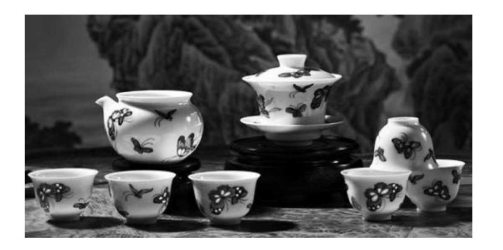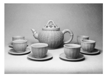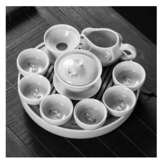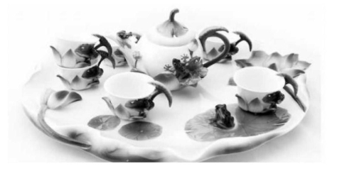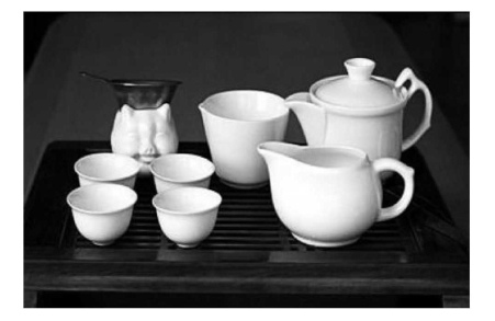 白瓷茶具(见图3-9)以其色白如玉而得名,具有坯质致密透明,上釉、成陶火度高,无吸水性,音清而韵长等特点。因其色泽洁白,能反映茶汤色泽,传热、保温性能适中,加之色彩缤纷、造型各异,堪称品茶器皿之珍品。白瓷的产地甚多,有江西景德镇、湖南醴陵、四川大邑、河北唐山、安徽祁门等。其中以江西景德镇的产品最为闻名。