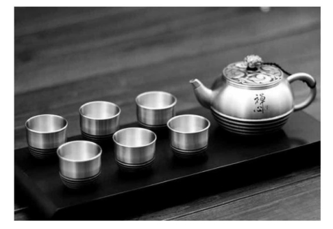 金属茶具是指由金、银、铜、铁、锡等金属材料制作而成的器具(见图3-17)。它是我国十分古老的日用器具之一,早在公元前18世纪至公元前221年秦始皇统一中国之前的1500年间,青铜器就得到了广泛的应用。先人用青铜制作盘、爵等用来盛水盛酒,自然也可用来盛茶。