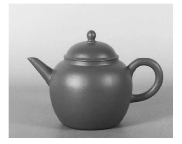 即泡茶的茶壶(见图3-22)。为宜兴紫砂壶,以小为贵。孟臣即明末清初时的制壶大师惠孟臣,其制作的小壶非常有名。壶的大小,因人数多少而异,一般是容量300毫升以下的小壶。这种小壶泡茶,色香味皆蕴,即使以沸水注入空壶也有茶味,盛夏隔夜茶味不变。茶壶经久耐用,耐热性强,寒冬沸水注入,亦无爆裂之忧。