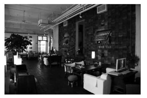 瓦库茶馆的命名来源于设计师余平老师的经历:十几年前,出于对古镇的喜爱,他组织了“中国古镇发现小组”。在行走中国古民居的过程中,他记录、思考、发掘当地的文化内涵,被土木砖瓦石头中的瓦所感动。瓦在百姓心目中,有独特的象征意义,人们栖居的家园,都离不开瓦的使用。瓦库茶馆(16号店)自2013年开业至今,生意火爆,店内环境简约明快、温馨和谐,是武汉品茗、用餐的好去处(见图9-4)。