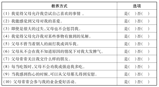 表1-1 父母教养方式测评简表
