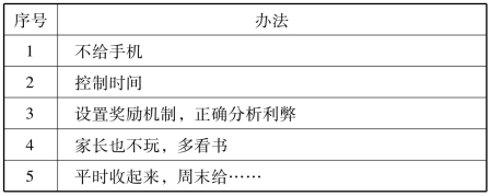 (4)如果你是家长,请对自己的孩子提出手机管理的办法。(表1-3)