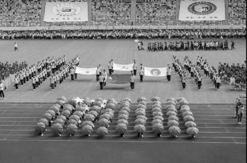 主持人C:下面走来的是彩旗队(图3-2)。五颜六色的彩旗,象征着丰富多彩的校园生活。希望我们的运动会也会像这迎风飘扬的彩旗一样五彩斑斓,充满生气!