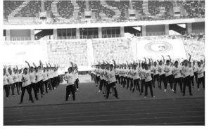 主持人B:下面有请西附初中初一学生带来的广播操表演《舞动青春》(图3-12)。