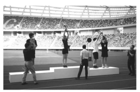 主持人B:下面举行颁奖仪式(图3-16,图3-17),请获奖班级派代表上台,有请西安交通大学苏州附属中学徐正伟校长,西安交通大学苏州附属中学钱明坤副校长、司庆强副校长为获奖班级和同学颁奖。
