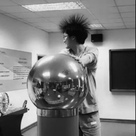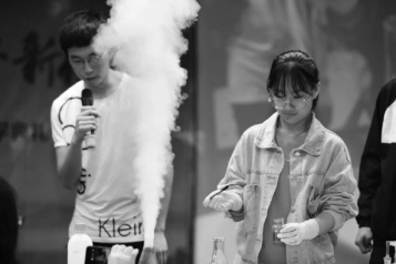 “千人震”——20名“勇士”走上舞台,手牵手连成一个圈,最两端的两名“勇士”同时接触事先已带电的范德格拉夫起电机上的两个小球,刹那间电荷传输,每个“勇士”都能感受到强有力的电流穿过身体。