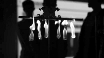 一把任人控制的“光剑”,在空中挥舞,时而暗黑,时而闪亮,科技感十足,配上现场紧张动感的音乐,让人仿佛置身于《星球大战》之中。