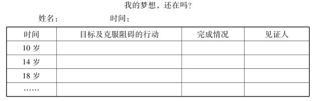 教师小结:有的学生在10岁时立志成为伟大的科学家、天文学家,但发现年龄越大,理想越模糊,实现理想的机会也越来越小。那是由于现实原因和个人原因,奋斗的目标变得越来越迷茫。因此,明确理想、坚定信念是实现个人成长和国家强盛的当务之急。