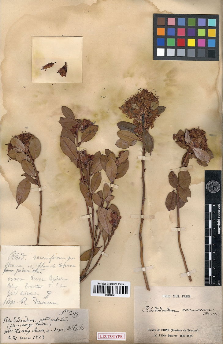 【分类地位】糙叶杜鹃亚属Subgen. Pseudorhodorastrum;腋花杜鹃组Sect.Rhodobotrys