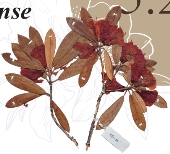 【形态特征】常绿灌木,高1~2m;枝直立,被白色星状绒毛,中间具腺刚毛。冬芽顶生,卵圆形,长8mm,被白色细绒毛。叶狭长形,稀披针形或长椭圆形,下面毛被灰白色,上表面不呈水泡状。叶柄长0.6~1.5cm,密被白色绒毛及有柄腺体。顶生伞形花序,有花4~5朵;总轴长2~3mm,被黄褐色绒毛;花梗长1~2cm,被白色星状绒毛及腺头刚毛;花萼小,杯状,长1~3mm,有5枚宽裂齿,边缘具白色腺头睫毛;花冠管状钟形,肉质,深红色,长3~3.7cm,内面基部有5枚深色的蜜腺囊,裂片5,宽圆形,长1.3cm,顶端有缺刻;雄蕊10,长2.2~3cm,花丝无毛,花药长圆形至倒卵圆形,长2.5~3mm;子房圆锥形,长6mm,先端略尖,延伸至花柱基部,密被淡白色绒毛及少数腺头刚毛,花柱长2~2.7cm,仅下部有绒毛及腺体,柱头平截,宽约1.5mm。蒴果圆柱形,长1.5cm,直径3.5mm,有肋纹及幼时毛被残迹。