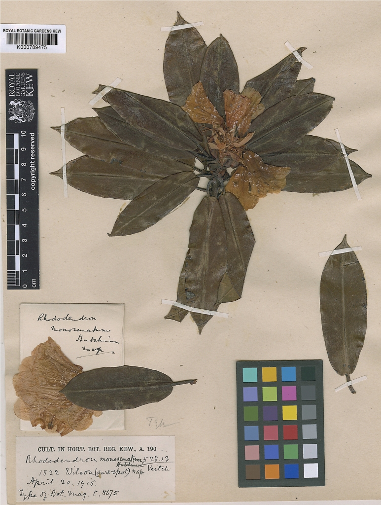 【分类地位】常绿杜鹃亚属Subgen. Hymenanthes;常绿杜鹃组Sect. Ponticum;麻花杜鹃亚组Subsect Maculifera