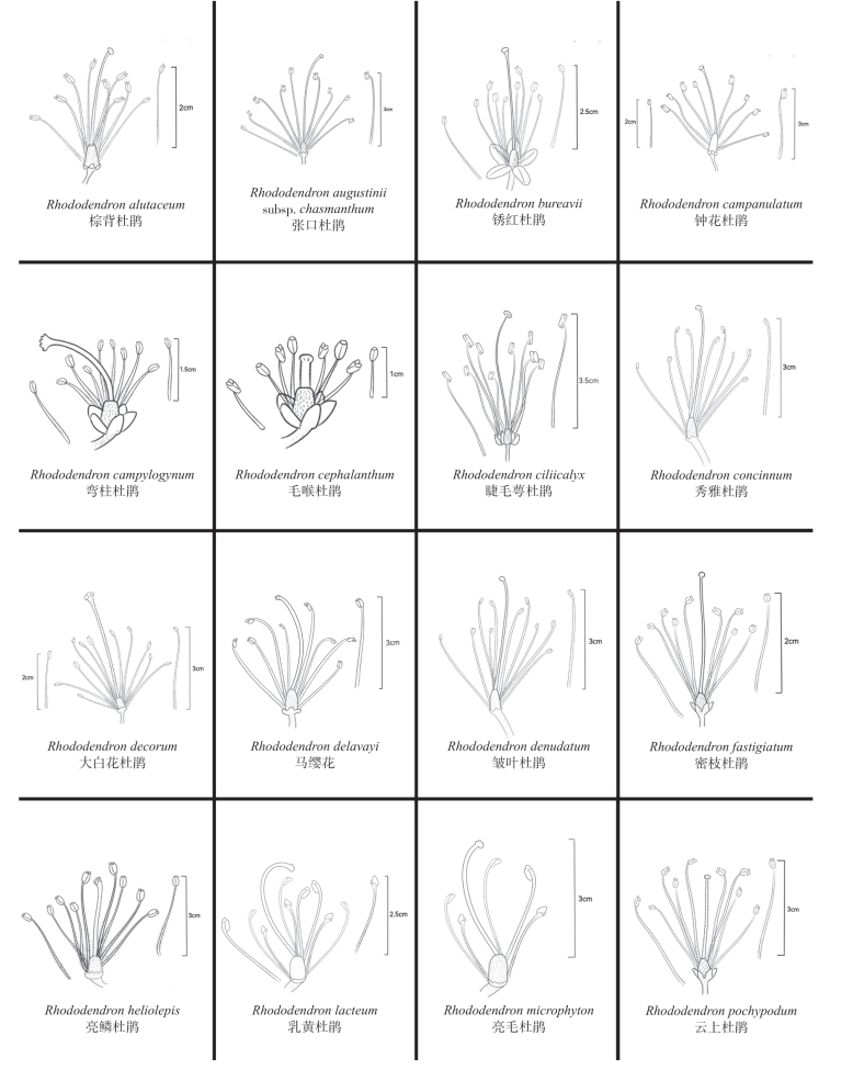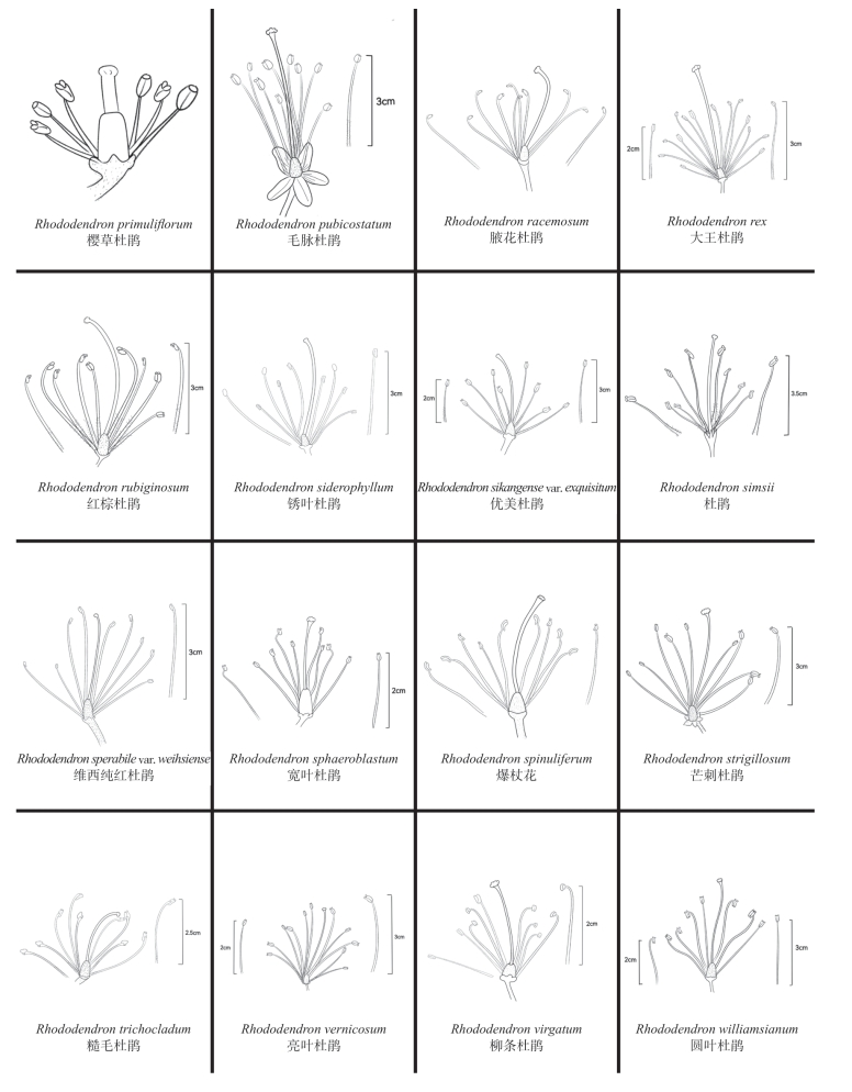 附录Ⅱ 云南轿子山杜鹃花雌雄蕊墨线图
