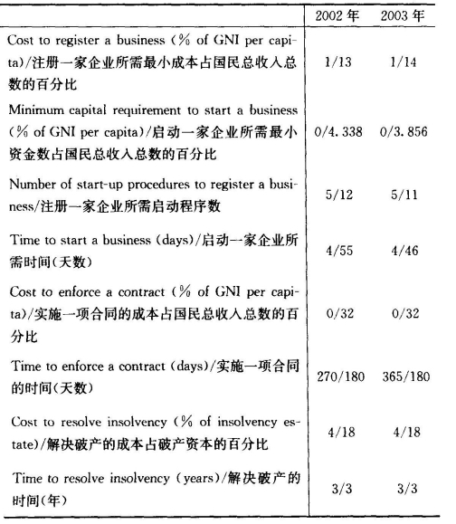 表2-6: 美国和中国企业在进入/退出市场的障碍指标上的差异(美国数据/中国数据)
