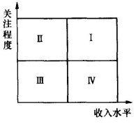 收入弹性的分析,同样是实现商业价值开发很重要的一个环节。尤其在中国目前收入水平不平衡的时候,对于收入弹性的研究更为重要。由于关注度在一定程度上可以弥补低收入者由于收入水平过低而减少的消费量,所以,我们还是根据关注度的大小和收入水平的高低将竞技体育赛事的消费者群体细分为四个区。从图5-5中看出,竞技体育的消费群体可以根据收入弹性的影响分为四类,Ⅰ区中关注程度高,观众的收入水平高,收入弹性小;Ⅱ区中,关注程度高,观众的收入水平低,收入弹性大;Ⅲ区中,关注程度低,观众收入低,收入弹性适中;Ⅳ区中,关注程度低,观众收入水平高,收入弹性适中。