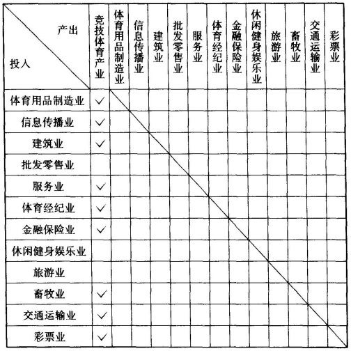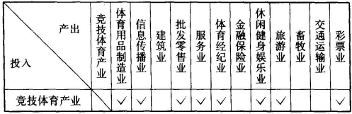 可以看到,这些产业及行业与竞技体育产业构成了具有紧密联系的产业链。竞技体育产业不仅接受其他行业投入的产品和资源,同时也为其他行业提供相应的产品或服务(如表6-3所示)。竞技体育带给其他产业可利用的商业机会,这是竞技体育外溢性的商业价值。竞技体育产业与其他产业联系得越广,说明它们的关联水平越高;竞技体育产业与其他产业之间的产品投入产出交换量越多,说明它们关联的程度越强。