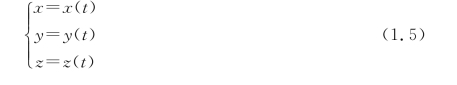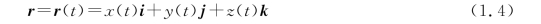 式(1.4)叫作质点的运动方程或运动函数。式(1.4)也可以用分量式表示: