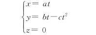 由第3个公式可知,质点在x Oy平面内运动。由第1个公式可解得t=,代入第2个公式得这就是该质点的轨迹方程,它是在x Oy平面内经过原点O的抛物线。