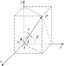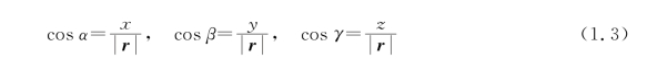 位置矢量r的方向可用方向余弦来表示,方向余弦由下式确定: