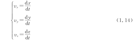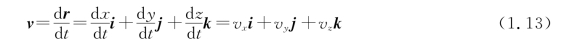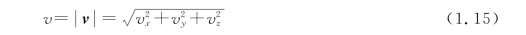 速度是矢量,它的方向即Δt趋近于零时Δr的极限方向。从图1.4中可以看出,Δt→0时Δr趋于轨道在A点的切线方向。所以我们说,速度的方向是沿着轨道的切向,且指向前进的一侧。速度的方向也可以用方向余弦来描述,方向余弦可根据矢量运算的一般方法由速度的三个分量确定。质点的速度描述质点的运动状态,速度的大小表示质点运动的快慢,速度的方向即为质点的运动方向。