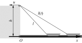 例1.4 通过绞车拉动湖中小船靠向岸边,如图1.6所示。如果绞车以恒定的速率u拉动纤绳,绞车定滑轮离水面的高度为h,求小船向岸边移动的速度和加速度。