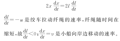 解 设小船到绞车定滑轮的距离为l,任意时刻小船到岸边的距离x总满足x 2=l 2-h 2,两边对时间t求导数,得