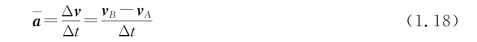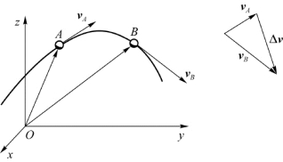 设质点在t时刻位于A点,速度为v A,在t+Δt时刻位于B点,速度为v B,若用Δv表示在时间Δt内质点速度的增量(图1.5),根据矢量运算法则有