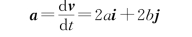 解 由质点的位置矢量r=at 2i+bt 2 j得运动方程