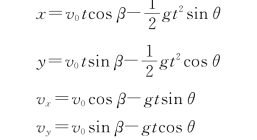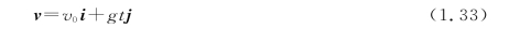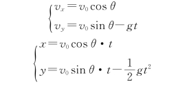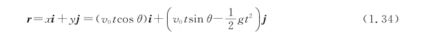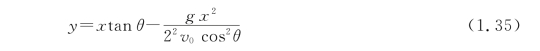 将一物体斜向上(或斜向下)以初速度v 0抛出(图1.11),抛出点为坐标原点,水平向右为x轴正方向,竖直向上为y轴正方向。按照正交分解方法,在水平方向质点以初速度v 0 cosθ做匀速直线运动;竖直方向以初速度v 0 sinθ做竖直上抛运动。则物体的两个分运动为