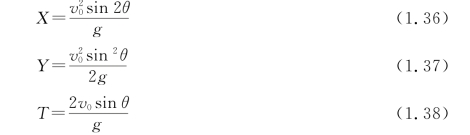 在给定初速度的情况下,射程与抛射角有关,当抛射角θ=π/4时,抛体的射程最大,其值为,如图1.12所示。