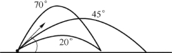 炮弹以这两个仰角发射时,得到相同的射程,都能击中靶心。但以大发射角α2=75.33°发射时,飞行时间长,射高也大。