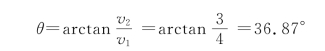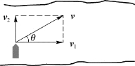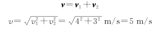 例1.11 东流的江水流速为v 1=4 m/s,一船在江中以航速(对水)v 2=3 m/s向正北行驶。试求:岸上的人将看到船以多大的速率v向什么方向航行?