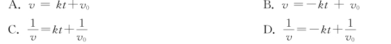 4.某物体的运动规律为d v/d t=-kv 2,式中的k为大于零的常数。当t=0时,初速度为v 0,则速度v与时间t的函数关系是( )。