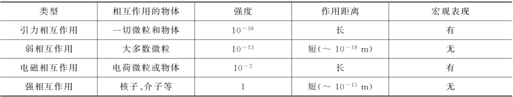 自然界的相互作用可归结为4种基本相互作用,如表2.1所示。