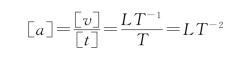 我们很容易看出,上式中每一项应具有长度的量纲L,所以可知该方程是正确的(式中数字系数正确与否,不能用量纲检验出来)。同理,有时从量纲的分析,可以明确方程中某一比例系数(实际上是一物理量)的量纲,从而定出该比例系数的单位。例如,在万有引力定律的表达式