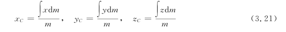 利用位矢沿直角坐标系各坐标轴的分量,可以得到质心坐标的分量式如下: