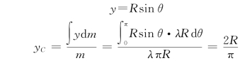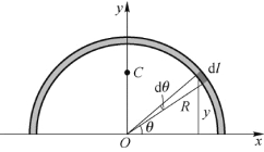 例3.7 将一均匀细铁丝弯成半径为R的半圆环,求其质心。
