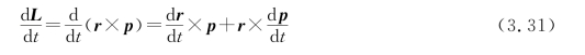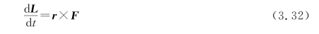 式(3.33)表明,作用于质点的合力对参考点O的力矩等于质点对该点O的角动量随时间的变化率。这与牛顿第二定律F=形式上是相似的,只是用M代替了F,用L代替了p。