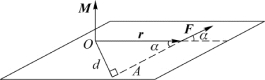 在一般意义上,力矩是对某一参考点而言的。如图3.17所示,力F的作用点相对于参考点O的位矢为r,质量为m的质点在力F的作用下做曲线运动,则F对参考点O的力矩M为