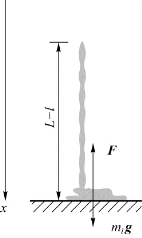 4.如习题图3.13所示,一质量为m的匀质链条,长为L,手持其上端,使下端离桌面的高度为h。现使链条自静止释放落于桌面上,试计算链条落到桌面上的长度为l时,桌面对链条的作用力。