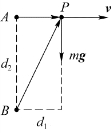 8.如习题图3.9所示,已知质点m在t时刻在P点的速度为v,AP相距为d 1,AB相距为d 2,相对于参考点A重力矩的大小为_________;m相对于B点的角动量大小为_________。