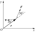 9.如习题图3.10所示,质点P的质量为2 kg,位置矢量为r,速度为v,它受到力F的作用。三个矢量均在x Oy平面内,且r=3.0 m,v=4.0 m/s,F=2 N,则该质点对原点O的角动量L=_________;作用在质点上的力对原点的力矩M=_________。