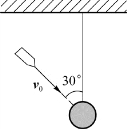 3.质量为20 g的子弹以400 m/s的速率沿习题图3.3所示的方向射入一原来静止的质量为980 g的摆球中,摆线长度不可伸缩,子弹射入后开始与摆球一起运动的速率为( )。