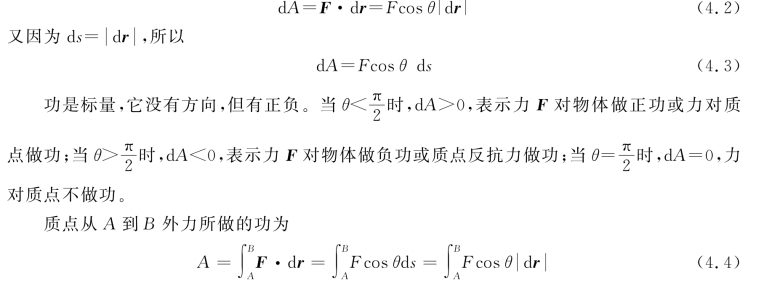 不论是恒力还是变力,不论是引力、电磁力、核力还是弹力、张力、摩擦力、理想气体对活塞的压力做功等,各种情况下功的计算都可以用式(4.4)。