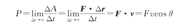功率为力与质点速度的标积。当力的方向与物体运动的速度方向垂直时,这个力对物体是不做功的。上面的表达式有很重要的实用价值。任何机器往往有其额定的功率,由上式可知,如果要求机器提供的力越大,速度就会越小。汽车在行驶过程中常常需要换挡就是由于这个原因。