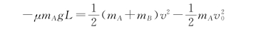 再对A、B系统应用质点系动能定理,注意到摩擦力的功是一对内力的功,可设B不动,A相对B移动了B的长度为L,摩擦力的功应为-μm Ag L,代入质点系动能定理