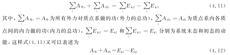这个结论称作质点系的动能定理。它表明:所有外力对质点系做的功与内力做功之和等于质点系动能的增量。