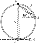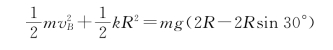 取点B为重力势能零点,在B点弹簧的伸长量为R,有