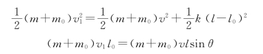 在第二个过程中,子弹、木块和弹簧的机械能和角动量守恒,取O点为参考点,弹簧原长为零势能点,有