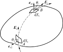 若引入面积元矢量d S(大小等于d S而方向是d S的正法线e n方向),d S=d S e n,由矢量的标积定义可知,E cosθd S为矢量E和d S的标积,即有E cosθd S=E·d S,那么