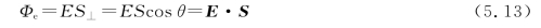 由图5.12(b)可见,通过平面S的电通量等于通过它在垂直于E的平面上的投影S⊥面的电通量,所以通过平面S的电通量为